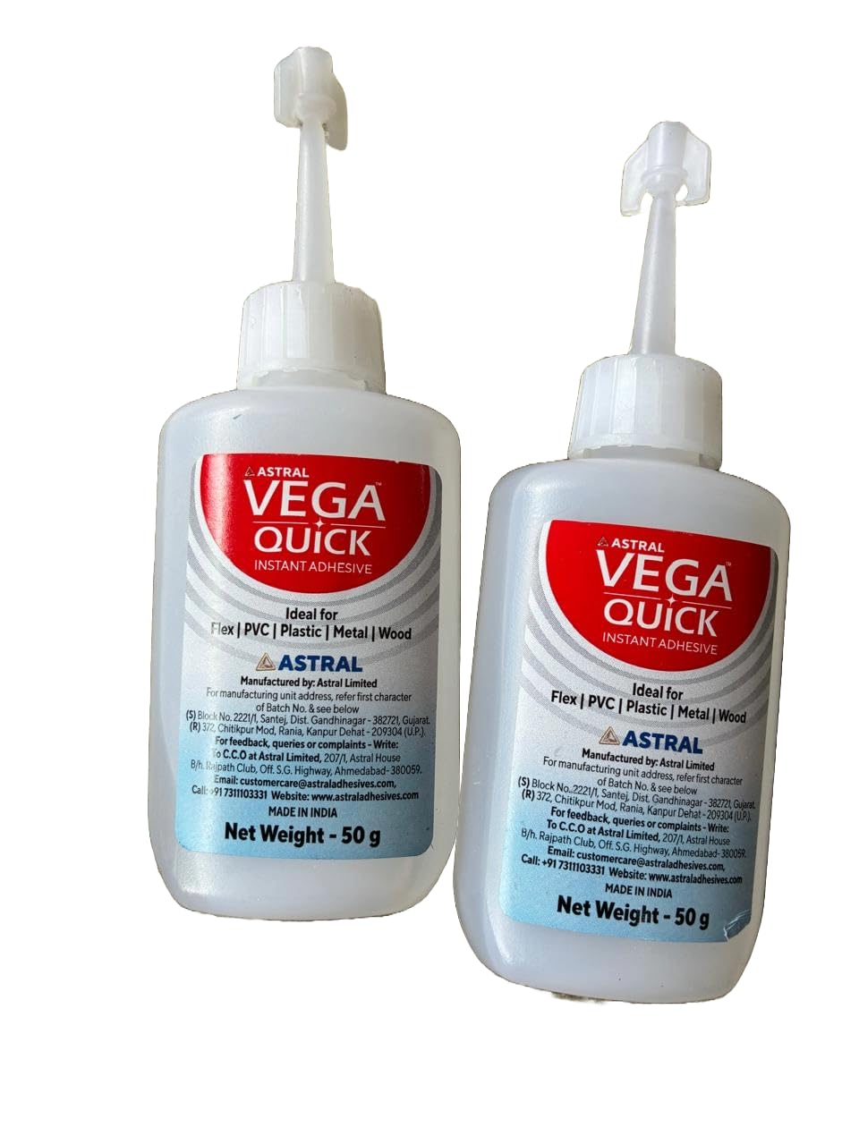 VegaQuick Instant Adhesive fast acting cyanoacrylate based glue hai jo quick fixing aur small repairs ke liye design kiya gaya hai. Liquid formula surfaces par apply hote hi seconds me strong bond create karta hai jisse immediate holding milti hai aur waiting time kam hota hai.